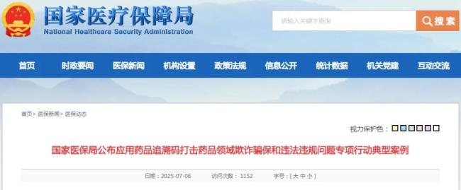 7月6日,国家医保局公布8起应用药品追溯码打击药品领域欺诈骗保和违法违规问题专项行动典型案例。