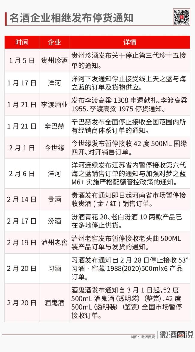 过去半年,以洋河、汾酒、泸州老窖、习酒、今世缘为代表的名酒企业相继发布停货通知,停货通知高达14份。