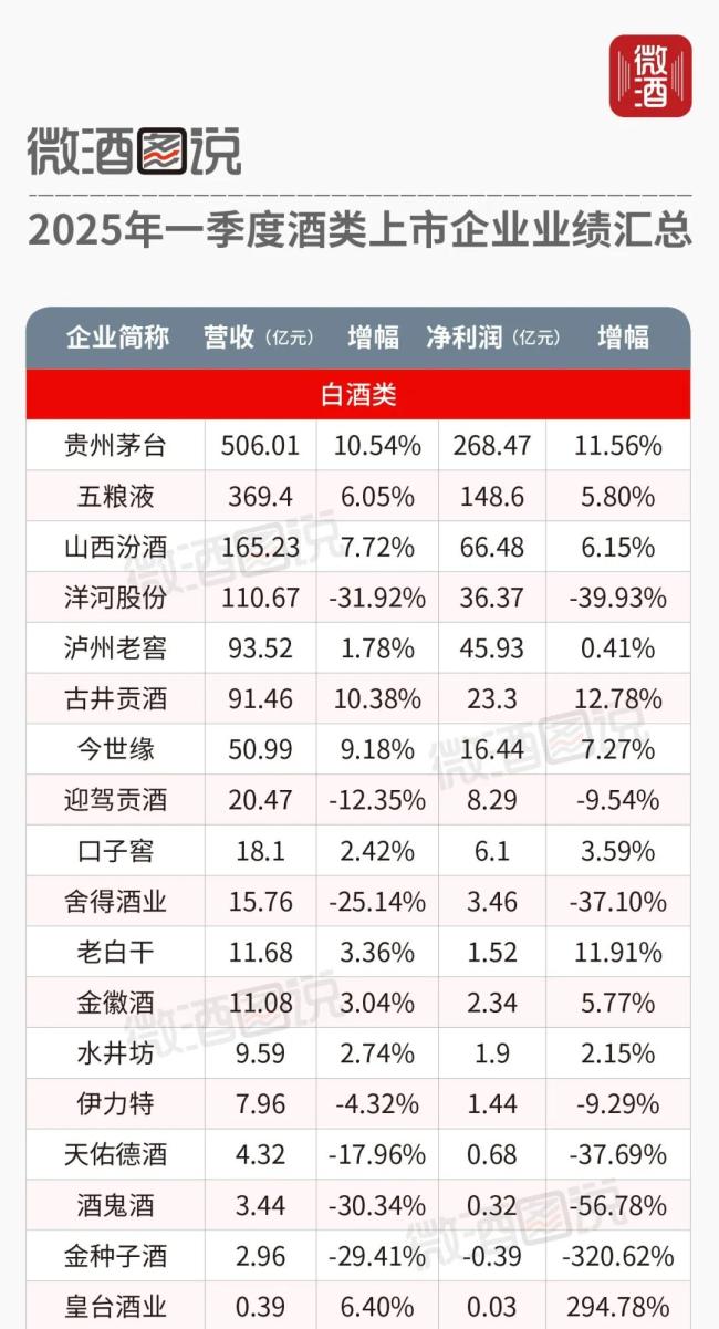 尽管整体营收与利润规模仍保持扩张态势,但增速较2024年同期显著放缓,反映出行业盈利增长动能的减弱,上市酒企业绩与市场表现保持同步。