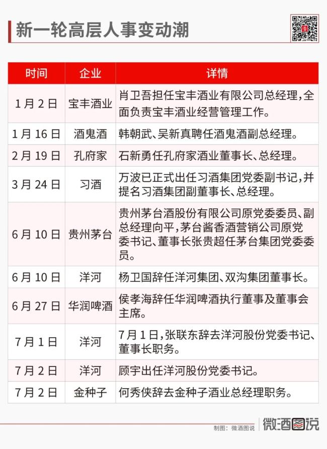 华润、茅台、洋河、习酒、金种子、宝丰等名酒企业高层人事更迭频现,预示着战略重心与执行路径的转向;五粮液平台公司成立,表明酒企在探索厂商关系新模式。
