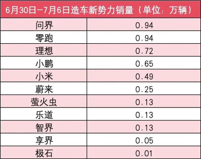 新势力7月第1周销量榜:全员下滑多家腰斩,问界理想零跑最坚挺