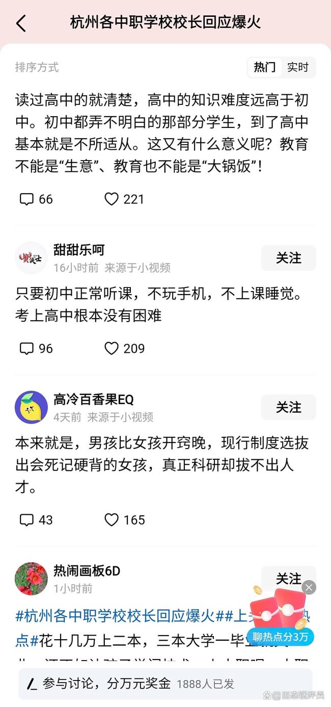 消息在网络上传播后,引发网友热议。有网友认为这是好事,职业教育应当被重视,掌握一门技术未来也有很好的出路。还有网友表示,这说明大家越来越理性,不再只盯着普高,适合孩子的才是最好的。许多人期待职业教育能继续发展,为孩子们提供更多优质的教育资源和就业机会。