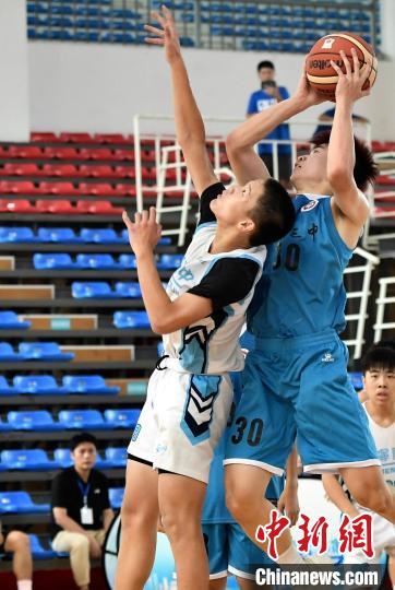 图为两岸青少年在福州外语外贸学院进行篮球比赛。中新社记者 张斌 摄