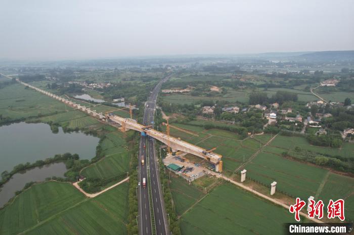 宁淮城际铁路新进展:跨S353省道128米连续梁合龙