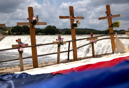 7月12日,悼念洪灾遇难者的十字架竖立在美国得克萨斯州瓜达卢普河岸边。新华社发(尼克·瓦格纳摄)