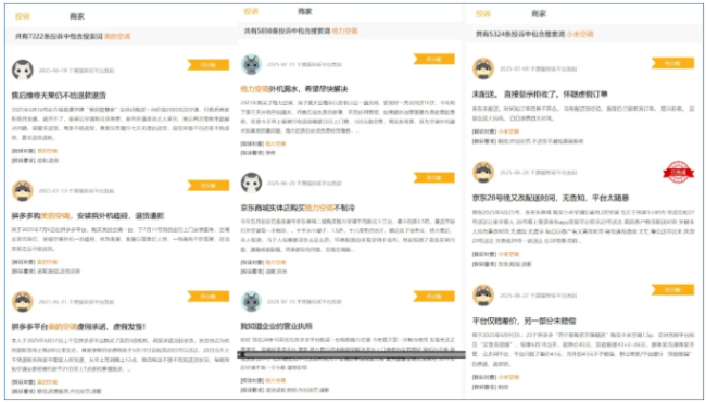 另外,空调虽并非高精尖产品,但对品控、安装及售后要求较高,一旦出现问题对用户体验影响较大。在黑猫投诉上,包括美的、格力、小米等品牌均有超过5000条投诉量,问题普遍集中在空调漏水、不制冷,以及一些销售和售后问题。短视频平台上,也不乏主流品牌空调漏水的视频,导致消费者怨声载道。