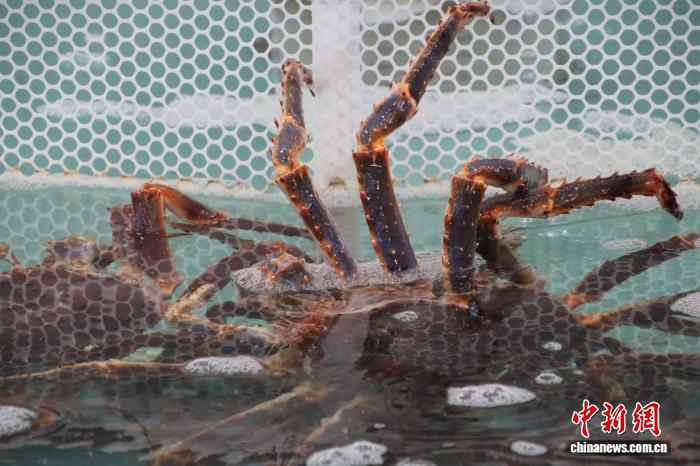 中新社记者近日走进这座吉林省对俄公路口岸了解到,每年经此入境的俄罗斯帝王蟹超过150万只,占全国市场的八成左右,是中国进口帝王蟹最重要的门户。