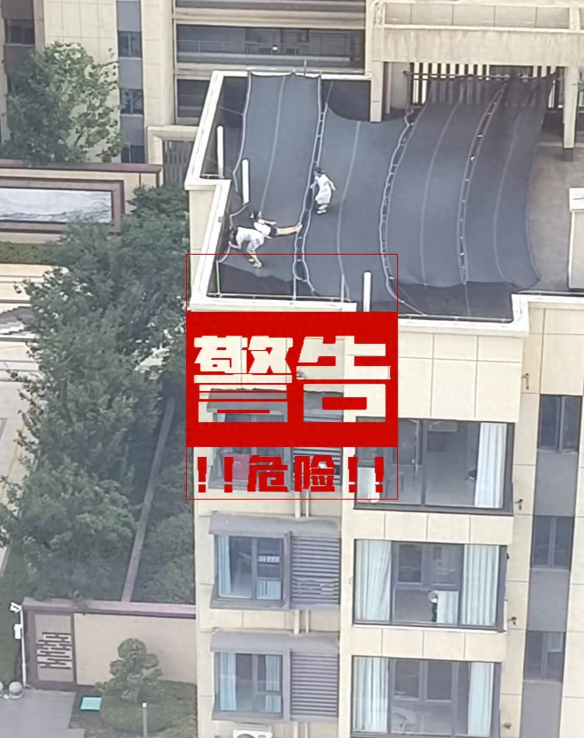 孩子把楼顶遮阳网当滑梯 街道办回应:已拆除