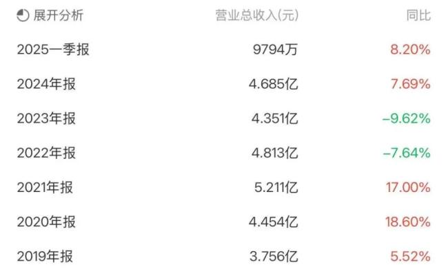 净利润虽然一直处于下降状态,但欣灵电气的营业收入在2021年、2024年、2025年一季度却显示增长。其中,2021年营业收入为5.21亿元,同比增长17.00%;2024年营业收入为4.69亿元,同比增长7.69%;2025年一季度营业收入为0.98亿元,同比增长8.20%。也就是说在上述年份,欣灵电气存在明显的增收不增利现象。