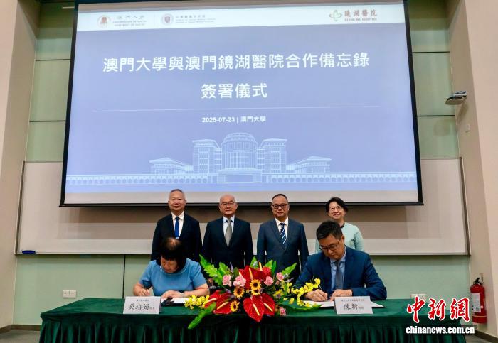 7月23日,澳门大学与镜湖医院签署《澳门大学与镜湖医院合作备忘录》,在大健康产品研发、药物临床试验、中药制剂优化、学术交流、资源共建等领域建立长期合作机制。(澳门大学供图)