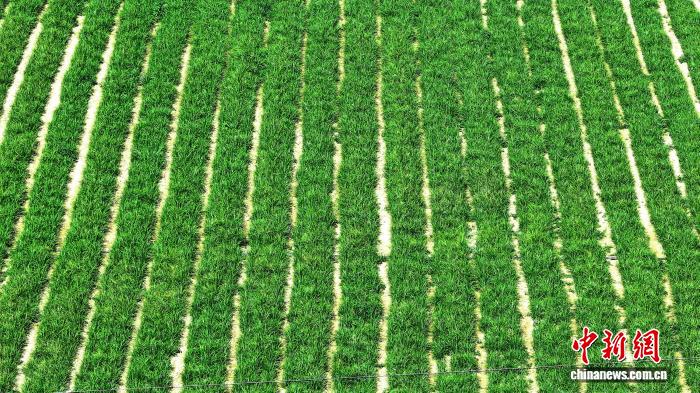 盛夏时节,甘肃省武威市民勤县夹河镇首期推广种植的油莎豆长势喜人,已进入分蘖期。董丽梅 摄