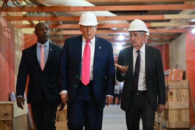 罕见一幕:特朗普头戴白色安全帽,走入美联储工地 施压降息引发关注