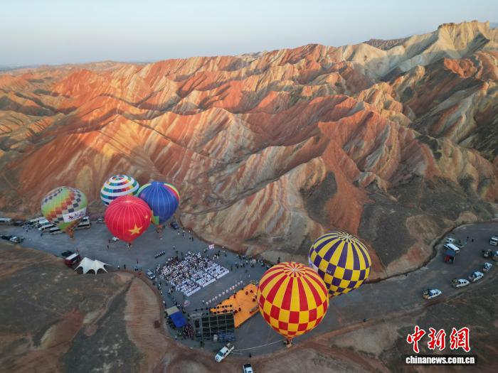 中新网甘肃张掖7月30日电(杨艳敏)29晚,甘肃张掖七彩丹霞景区内,40具色彩斑斓的热气球缓缓升起,巨大伞面在阳光映射下流光溢彩,与脚下连绵起伏、五彩斑斓的丹霞地貌相映成趣,将现场氛围推向高潮,也拉开了第五届张掖七彩丹霞热气球嘉年华的大幕。张掖丹霞文化旅游股份有限公司党委书记、董事长谭建德在开幕式上致辞,向各方宾客发出热情邀约。