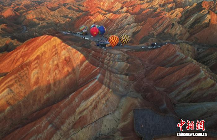 7月29日,热气球与丹霞景观。杨艳敏 摄