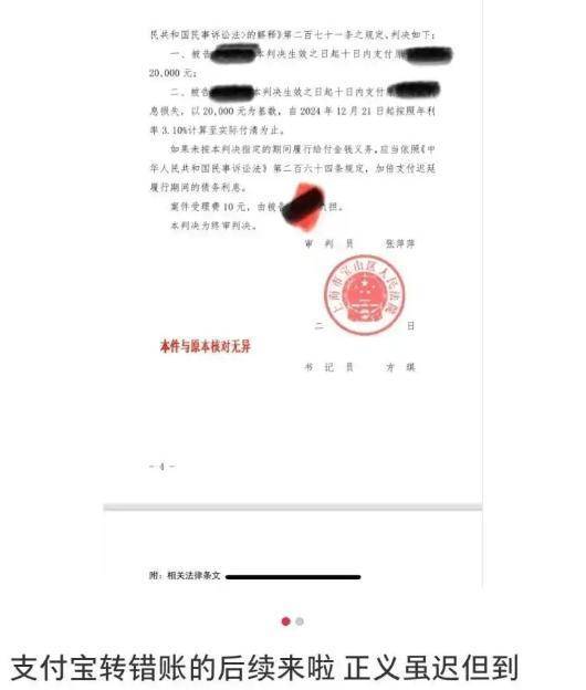 因收款方同名同姓、账号仅差三个数字,女子转错两万后起诉,法院:返还不当得利 正义虽迟但到
