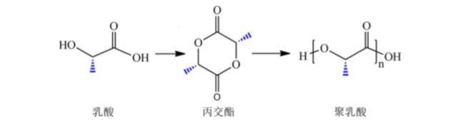 (“乳酸-丙交酯-聚乳酸”的两步法原理)