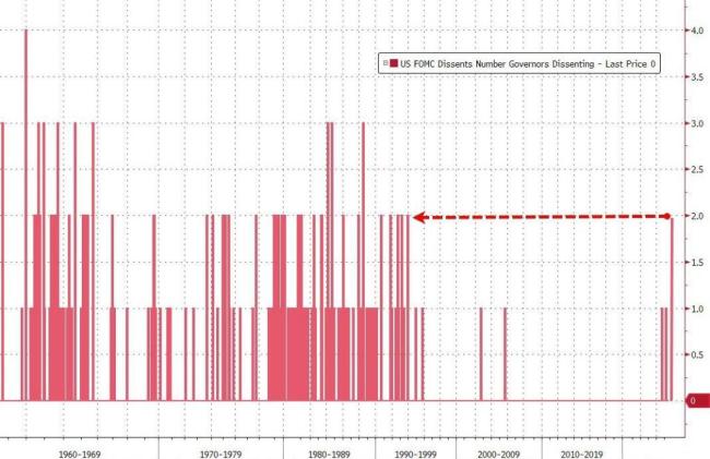 利率市场重新定价:美联储主席提前离任可能性进一步降低 双重异议票巩固地位。美联储内部出现罕见分歧,两位理事沃勒和鲍曼在最近一次会议上同时投出异议票,支持降息,与鲍威尔维持利率不变的立场形成对比。这是自1993年以来首次出现两名理事同时持不同意见的情况。