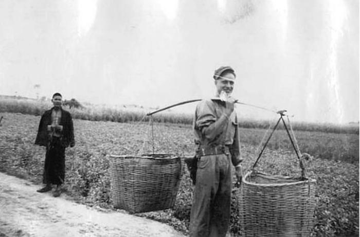 美国飞行员在汉中街头拉黄包车。(资料图)汉中市档案馆供图