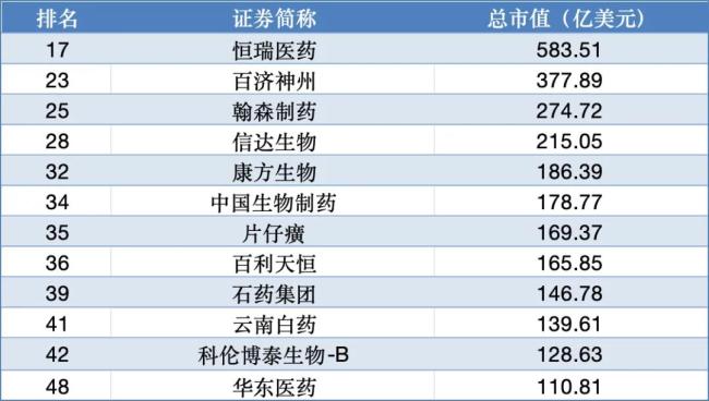 全球制药市值TOP50上榜中国药企|截至8月5日收盘(数据来源:Wind)