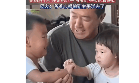 这一幕被传到网上后,网友们的评论让人忍俊不禁。有网友说:"弟弟那小表情,仿佛在说'我到底是不是爷爷亲生的呀',太逗了!"还有网友调侃:"爷爷这偏袒,偏出了艺术感,主打一个让姐弟俩的感情在'战火'中升温。"