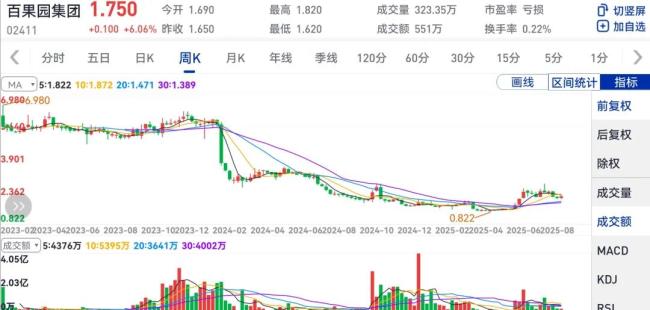 2024年1月16日,百果园集团(02411.HK)上市一周年,当天,公司股价暴跌超过30%。之后,公司股价总体大幅走低,今年4月7日,触及0.823港元/股的历史低点。上周五,百果园集团的收盘价为1.750港元/股,总市值26.94亿元,较上市之初的百亿港元,已大幅缩水。