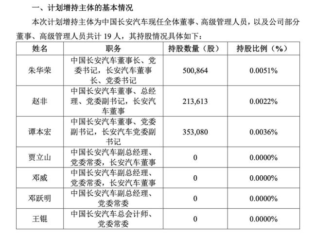 长安汽车19名高管集体增持 彰显未来发展信心