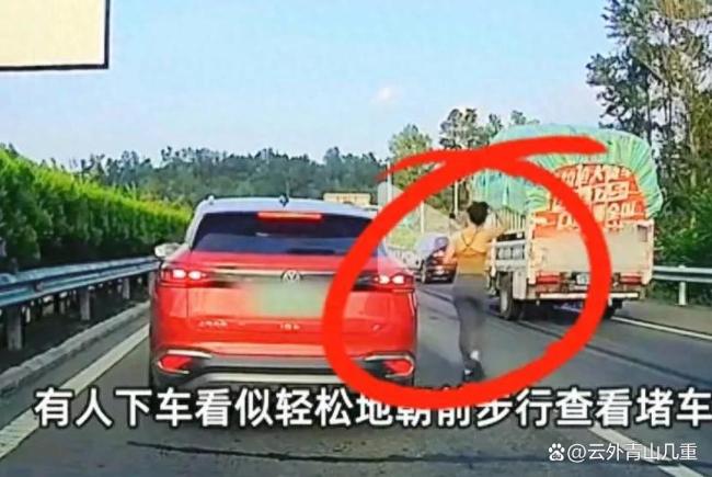 贵州交警发布的现场视频中,瑜伽裤女生惊魂未定:“就想去前面看看堵多久,突然听见‘砰砰’的撞击声。”这番话让网友后怕:“要是晚走两秒,人就没了!”根据《道路交通安全法实施条例》,高速堵车时应立即开启双闪,车上人员全部撤离至护栏外,150米外放置警示牌,严禁在车道内走动。