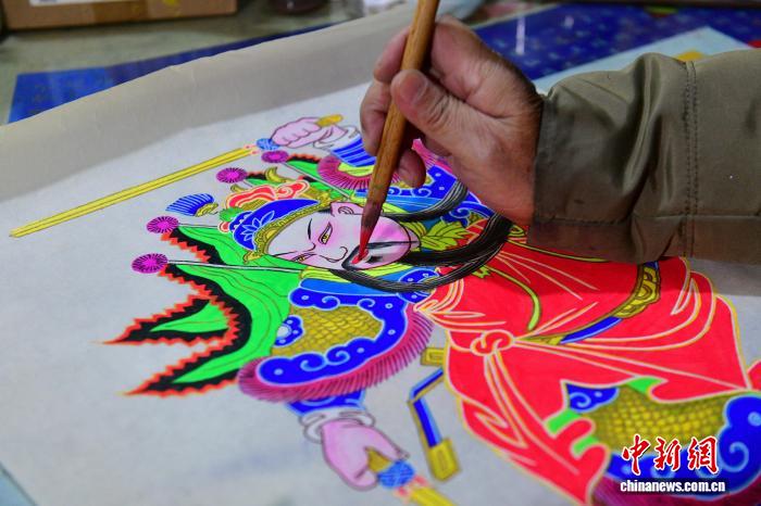 2025年2月,四川德阳,图为精心绘制绵竹年画。王平 摄