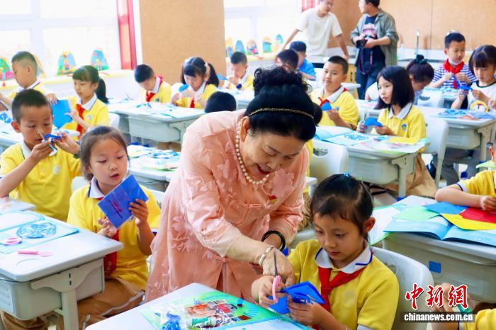 资料图为伏兆娥指导学生体验剪纸。宁夏文旅厅供图
