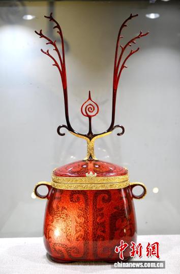 图为展出的脱胎漆器作品《汉兽纹漆罐》。中新社记者 吕明 摄