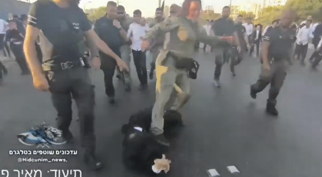 极端正统派犹太人被以色列女警踹头!