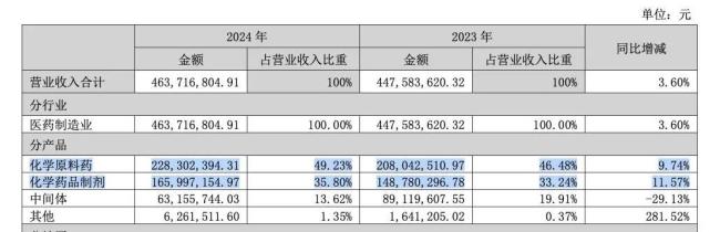 科源制药现有业务聚焦于化学药领域,主营业务包括化学原料药、化学药品制剂,分别占其2024年营收的49.23%、35.80%;主营产品包括格列齐特、盐酸二甲双胍、盐酸罗哌卡因等,虽然其终端需求相对稳定,但市场竞争持续加剧。
