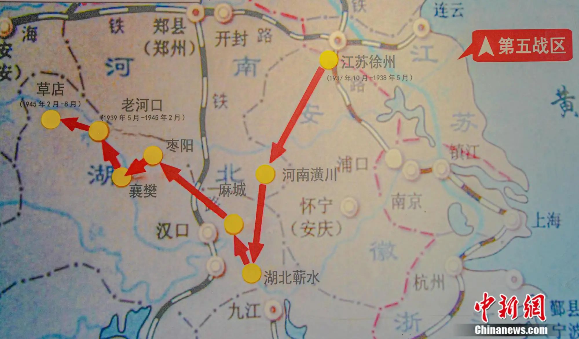 第五战区司令长官部地址变迁示意图。(翻拍于第五战区司令长官部旧址)张倩龙 摄