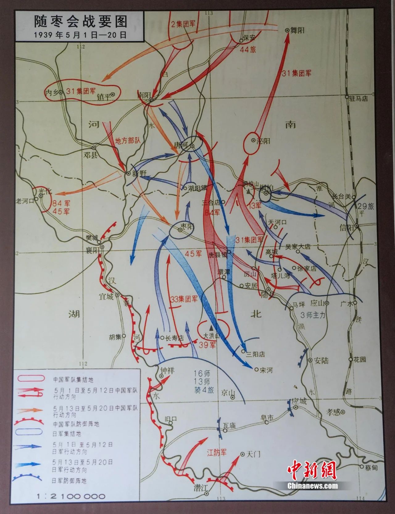 随枣会战要图。(翻拍于第五战区司令长官部旧址)张倩龙 摄