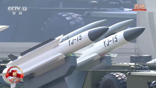 反舰导弹方队驶过天安门广场。鹰击-15导弹和鹰击-19、鹰击-17、鹰击-20高超声速导弹,是打击海上之敌的“尖兵利器”。