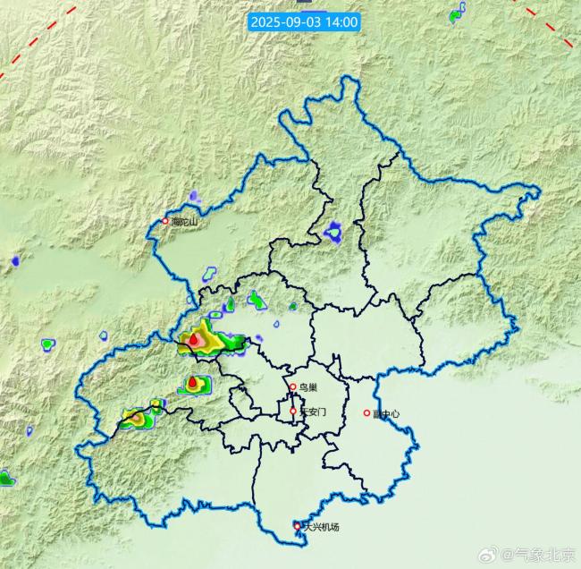 9月3日14:18预报:当前至傍晚,北京部分地区有分散性雷阵雨 西部北部城区需防雷电