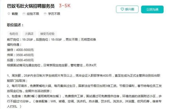 巴奴近万“临时工”或无社保,新招员工仅“月休4天”