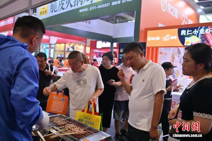 9月5日,观众在展会品尝烧烤。张瑶 摄