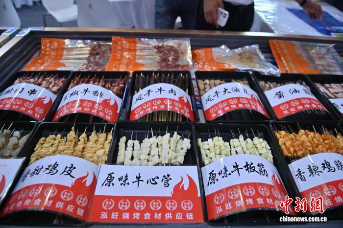 9月5日,展会上展示的各种烤串。张瑶 摄