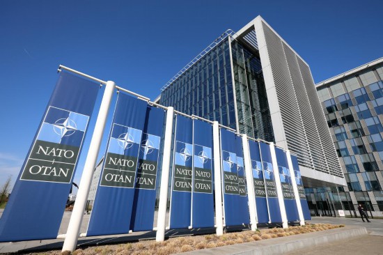 这是4月4日在比利时布鲁塞尔拍摄的北约总部一角。新华社记者赵丁喆摄