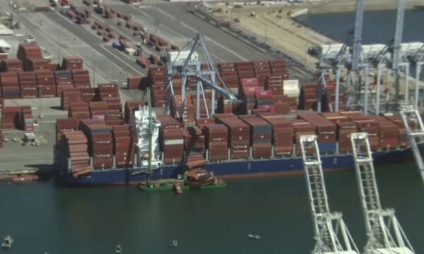 美国长滩港一货轮掉落近70个货柜 集装箱坠海暂无伤亡