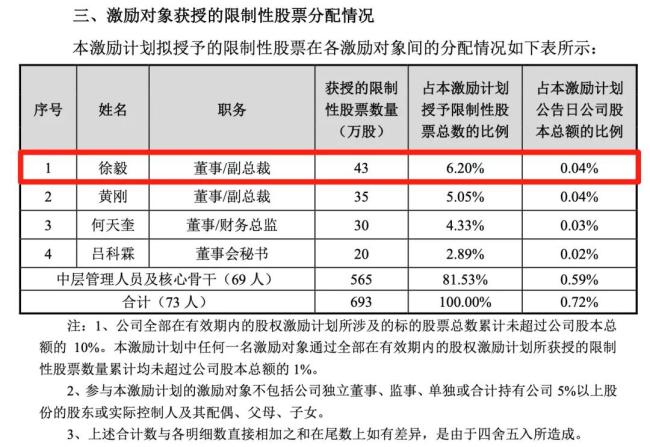 或许是眼看股权激励无望,在半年报披露的当天,千禾味业同日披露了公司董事兼副总裁徐毅辞职的消息。而在上述股权激励计划中,徐毅排在73名激励对象中的第一位,获授的限制性股票数量为43万股,占到该激励计划授予限制性股票总数的6.2%,占千禾味业股本总额的0.04%。