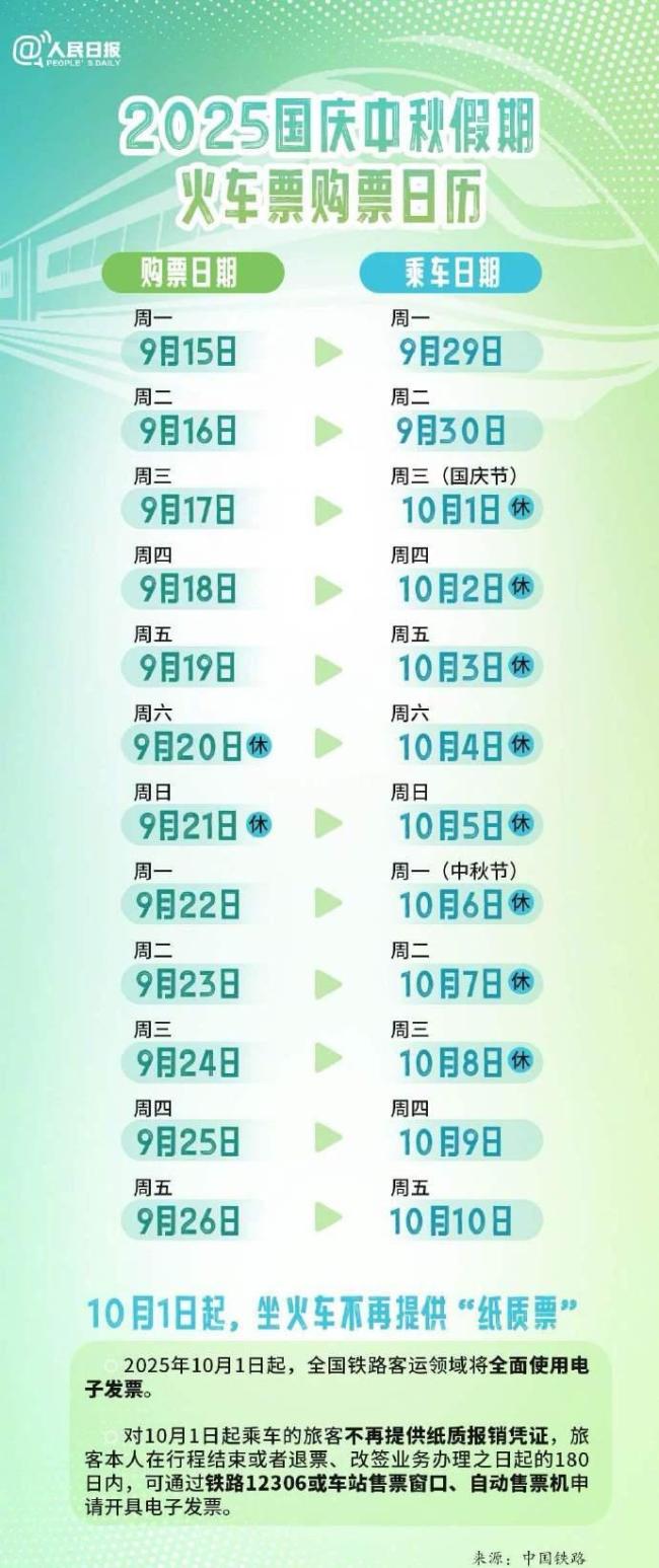 另外,根据铁路部门的规定,自10月1日起乘车的旅客将不再提供纸质报销凭证。