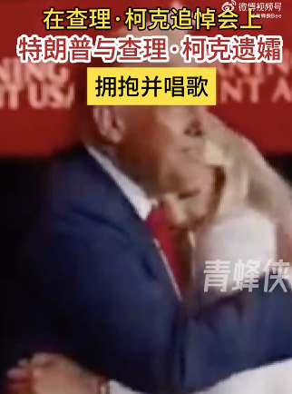 当地时间9月21日,特朗普盟友查理·柯克悼念会举行,特朗普与查理·柯克遗孀埃里卡·柯克拥抱并唱歌。