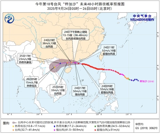 中国天气网讯 今天(9月24日),今年第18号台风“桦加沙”将登陆广东沿海,可能为今年来登陆我国的最强台风。受其影响,华南、华东多地雨势猛烈,今天为台风雨最强时段,广东局地或遭遇特大暴雨,明天强降雨核心区将转移至广西等地,公众需注意防范强降雨可能引发的各类次生灾害,同时警惕风暴潮叠加天文大潮可能引发沿海地区出现海水倒灌。
