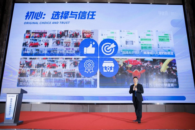 在发布会上,学优高&萌劲长品牌创始人盛滨华向全国合作伙伴致谢并分享了其创业历程与发展规划。十四年前,盛滨华先生以代理商身份涉足母婴行业,凭借对儿童奶粉赛道的精准判断及合作伙伴支持,学优高短时间内在江西自主儿童奶粉销量榜上位居前列,合作门店达380家,其中多数为本地头部连锁。这些成绩离不开众多合作伙伴的信任与支持。
