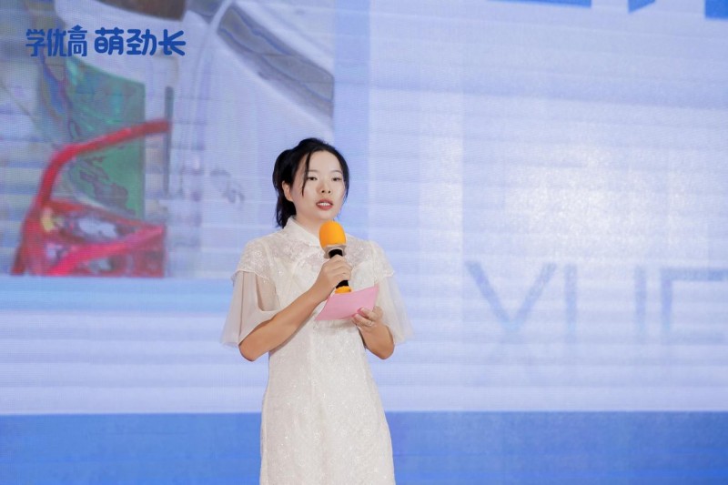 而来自景德镇萌劲长区代的杨小燕作为经销商代表发表了讲话。她以个人经历为切入点,分享了在事业低谷期选择加入萌劲长后,借助新零售模式,依托多个社交平台进行推广,成功回到事业巅峰期的经历,并计划在一年内帮助百名孩子健康成长。