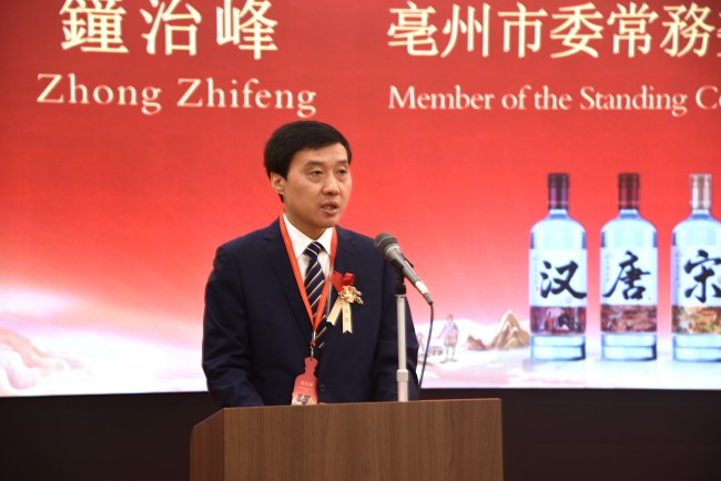 图丨亳州市委常委、副市长钟治峰向嘉宾介绍亳州特色产业