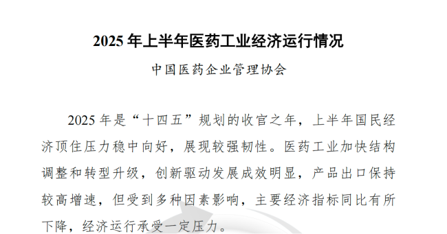 近日,中国医药企业管理协会发布《2025年上半年医药工业经济运行情况》。2025年上半年,分化成为行业关键词;交银国际在一份研究报告中也指出,2025年有望是医药行业的关键转折之年。