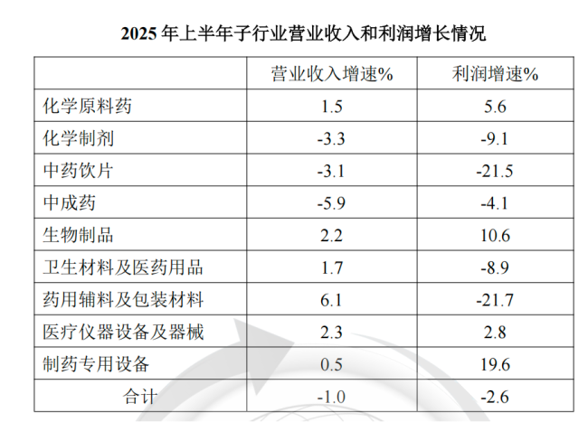 其中生物药、制药专用设备利润增幅达2位数,中药饮片、辅料包材利润降幅为2位数。